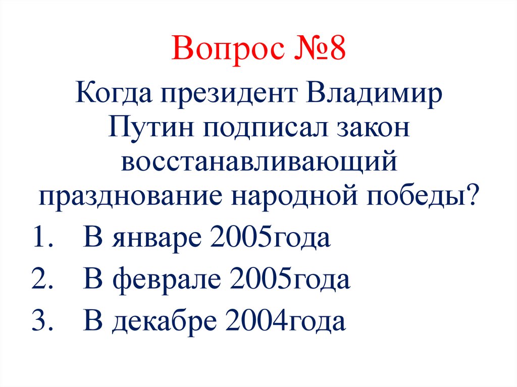 Вопрос №8Когда президент Владимир