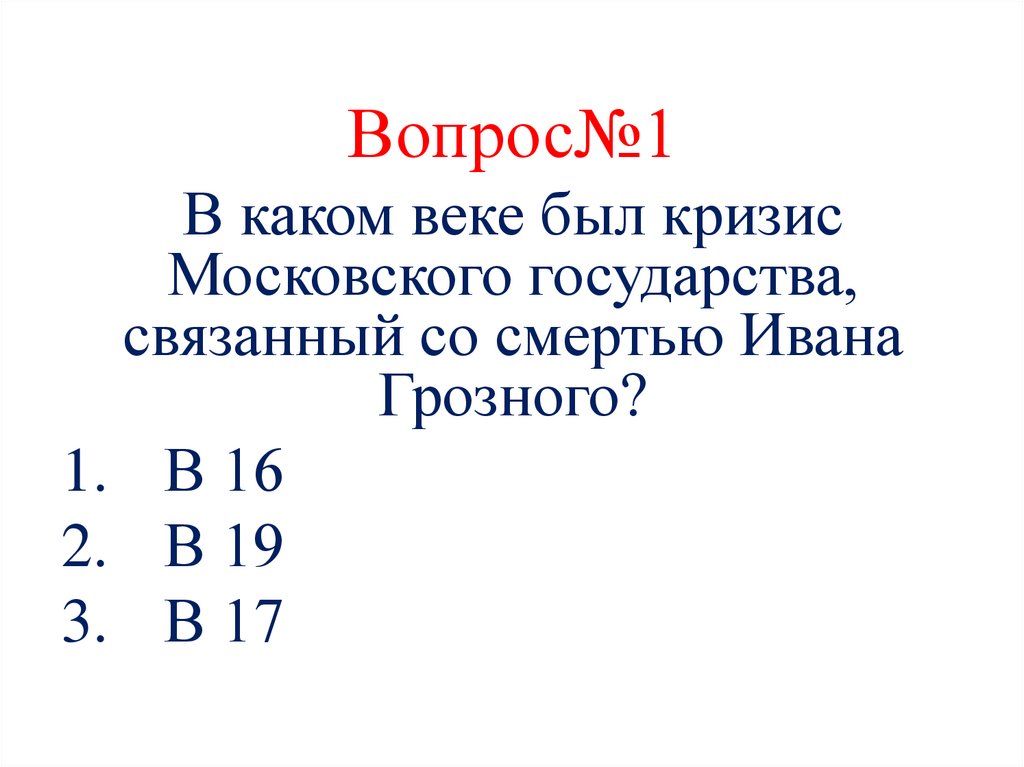 Вопрос№1В каком веке был кризис