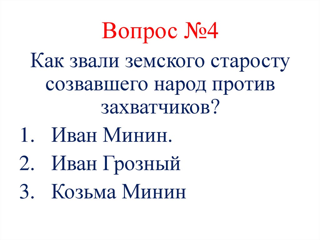 Вопрос №4Как звали земского старосту