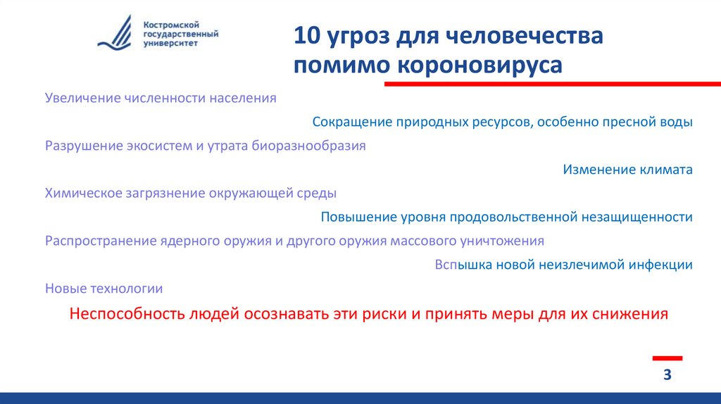 Неспособность людей осознавать эти риски и принять меры для их снижения