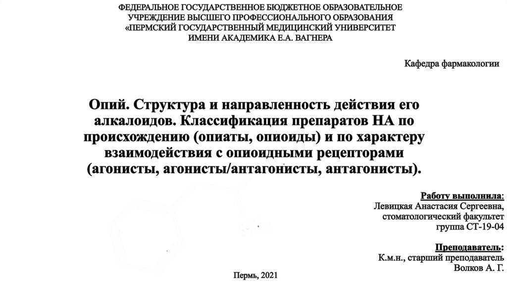 Опий. Структура и направленность действия его алкалоидов. Классификация препаратов НА