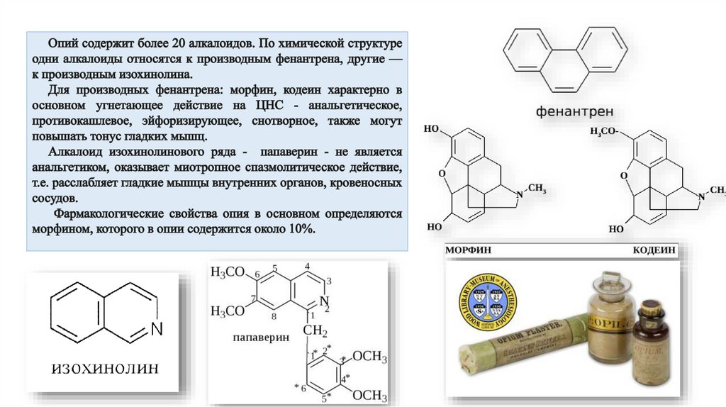 Опий. Структура и направленность действия его алкалоидов. Классификация препаратов НА по происхождению