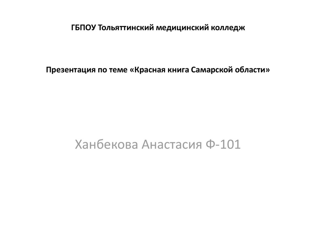 ГБПОУ Тольяттинский медицинский колледжПрезентация по теме «Красная книга Самарской области»