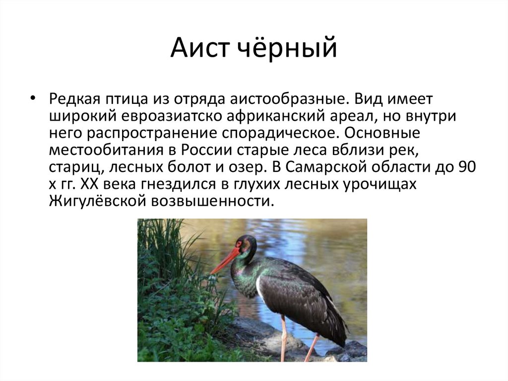 Аист чёрный• Редкая птица из отряда аистообразные. Вид имеет