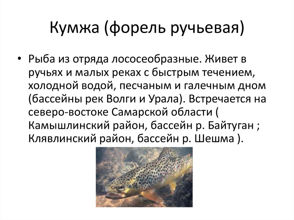 Кумжа (форель ручьевая)• Рыба из отряда лососеобразные. Живет в