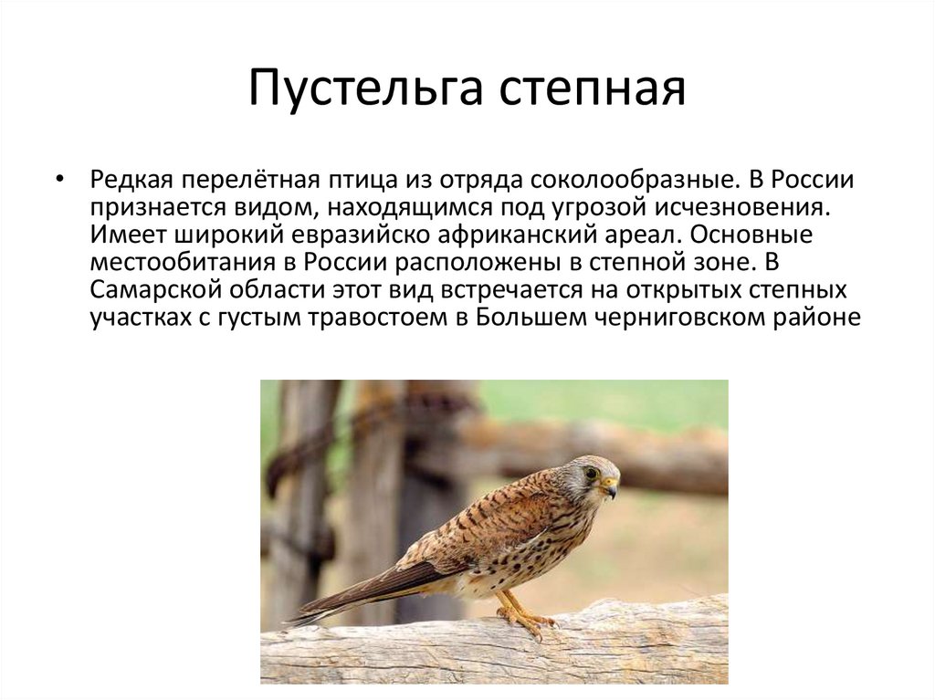 Пустельга степная• Редкая перелётная птица из отряда соколообразные. В России