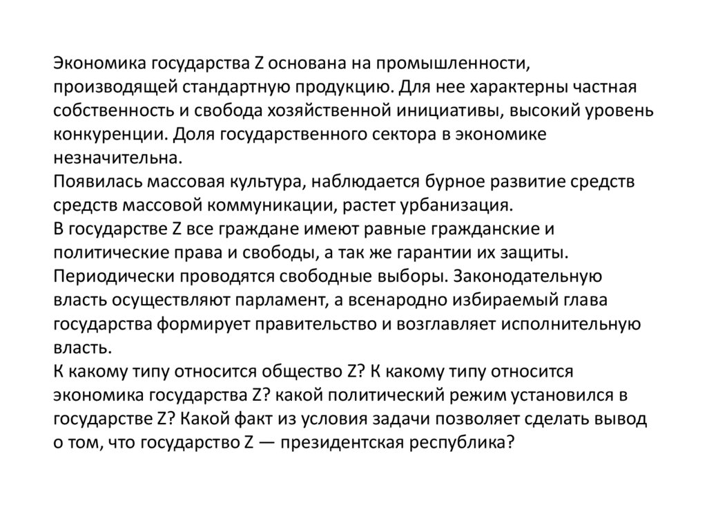 экономика государства Z? какой политический режим установился в