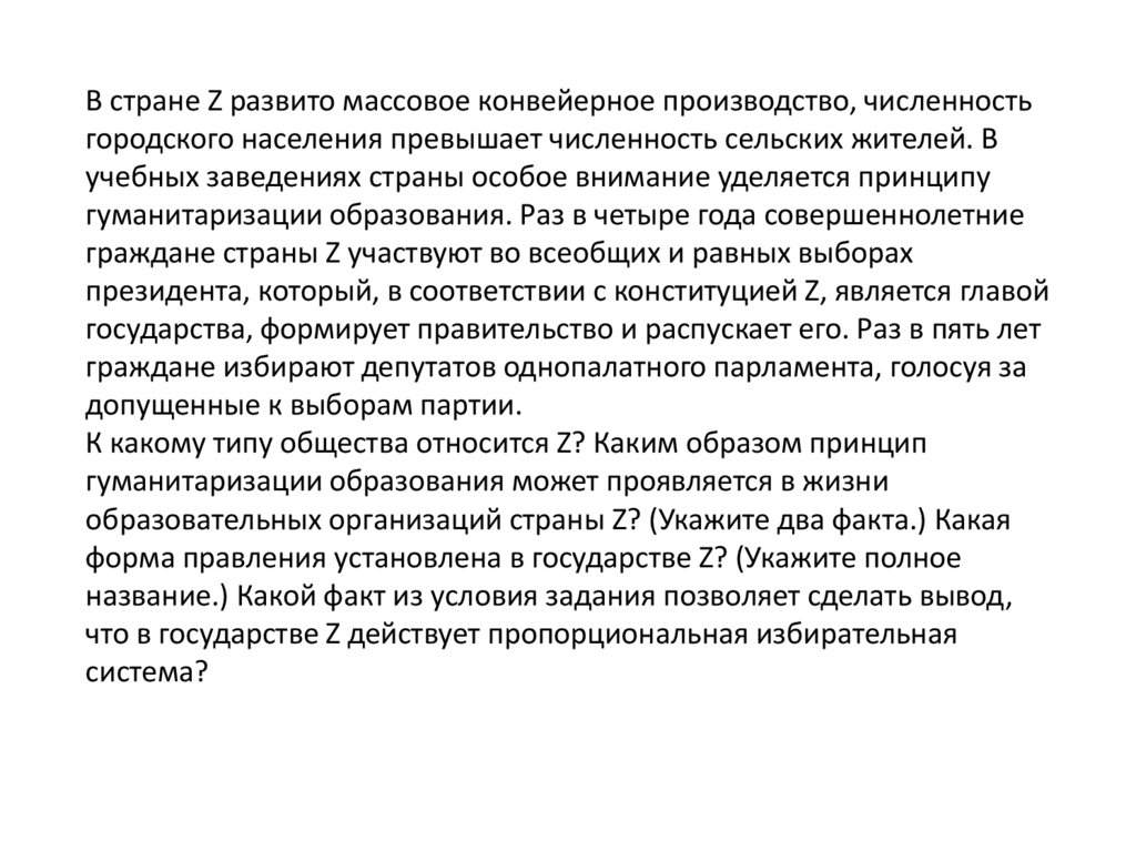 государстве Z? Какой факт из условия задачи позволяет сделать вывод