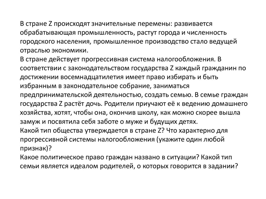 В стране Z происходят значительные перемены: развиваетсяобрабатывающая промышленность, растут города и численность