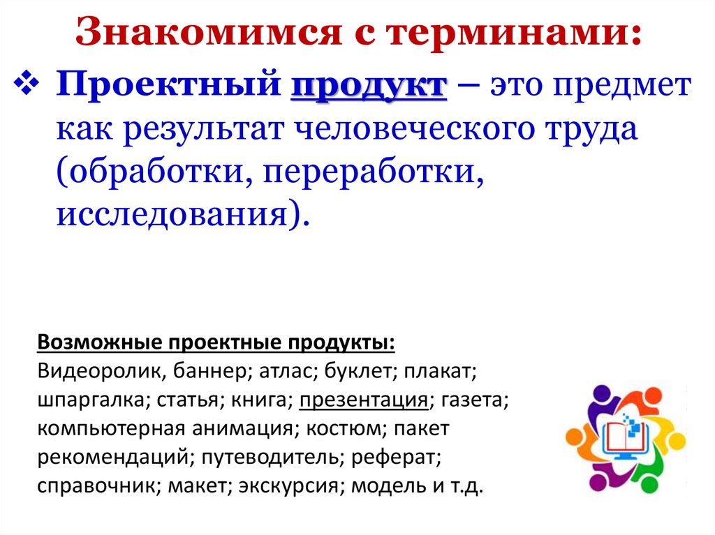 Знакомимся с терминами:Проектный продукт – это предмет