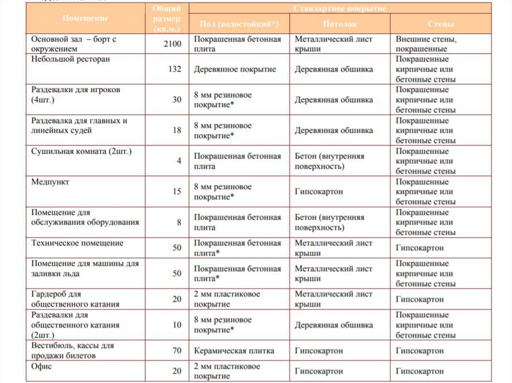 • – По крайней мере, одна стандартная ИИХФ ледовая поверхность размером