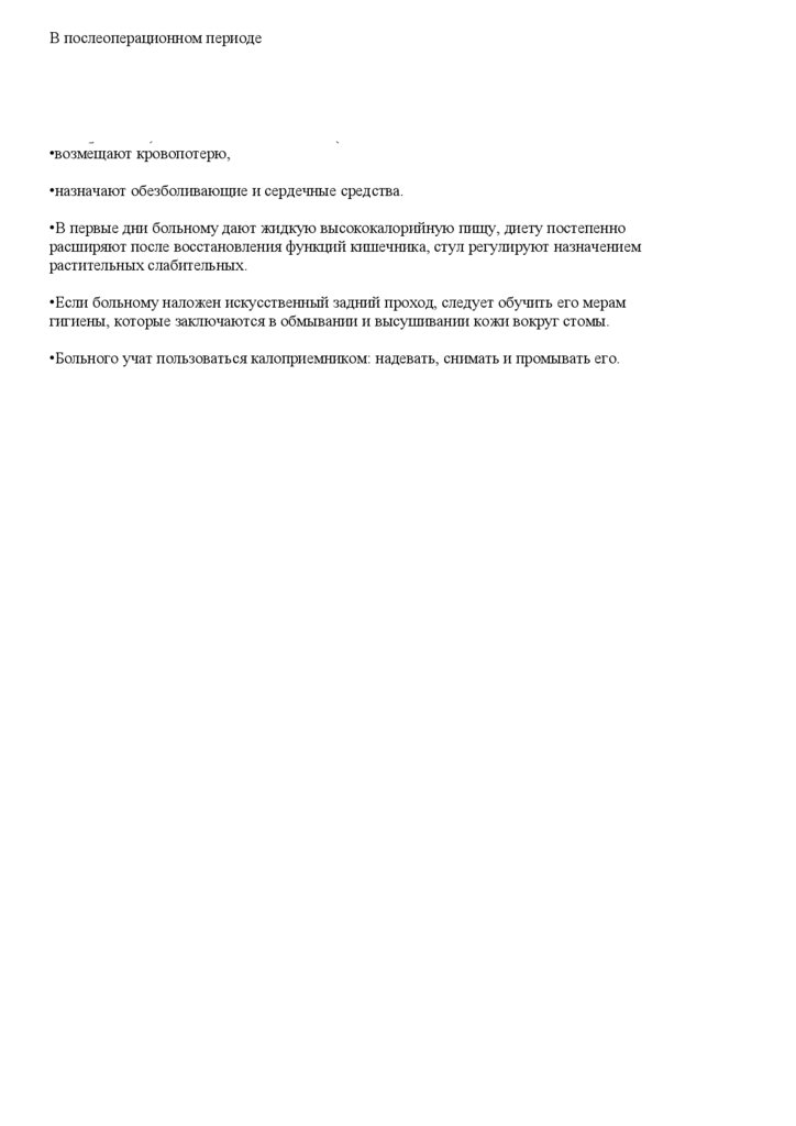 •Если больному наложен искусственный задний проход, следует обучить его мерам