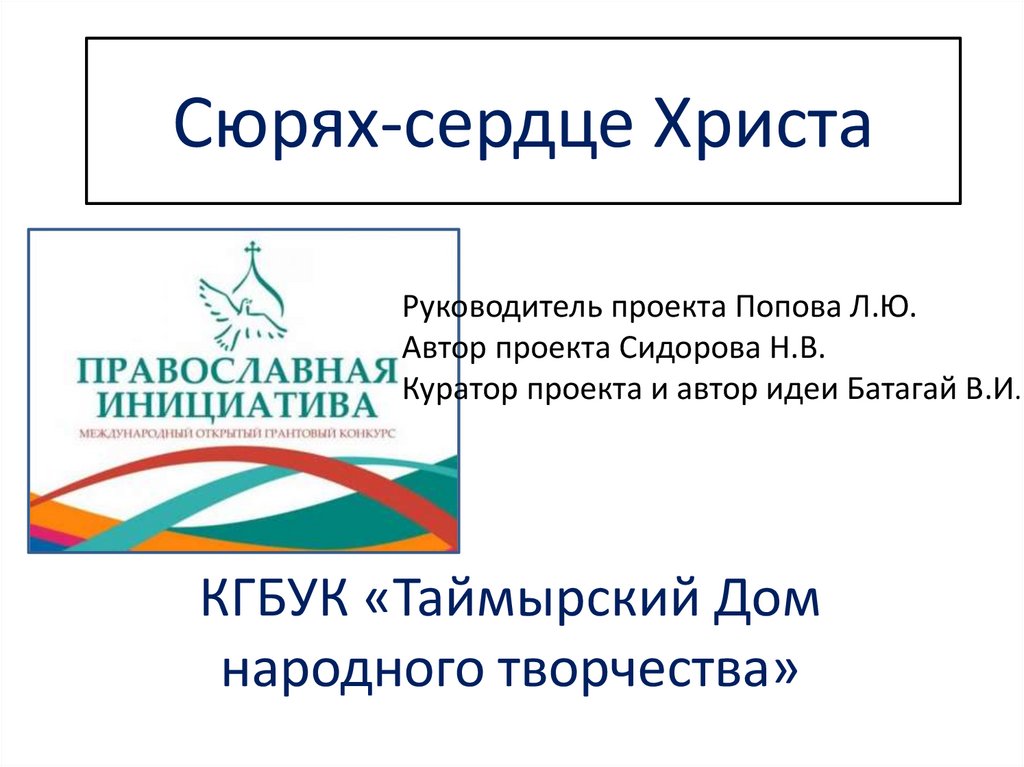 Сюрях-сердце ХристаРуководитель проекта Попова Л.Ю.