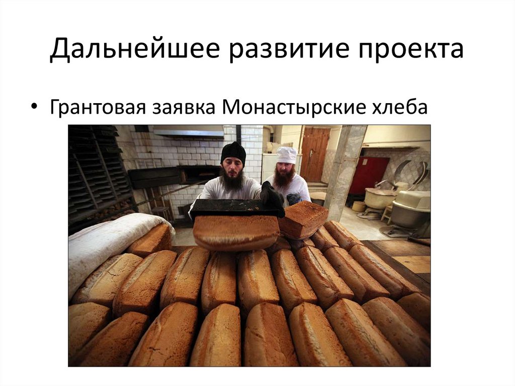 Дальнейшее развитие проекта• Грантовая заявка Монастырские хлеба