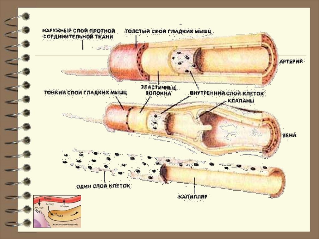 нарисуйте схематично стенкиартерий, вен, капилляров,
