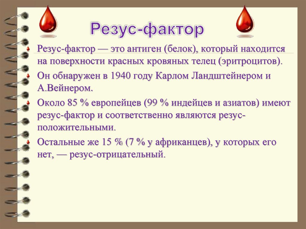 Резус-фактор — это антиген (белок), который находитсяна поверхности красных кровяных телец (эритроцитов).