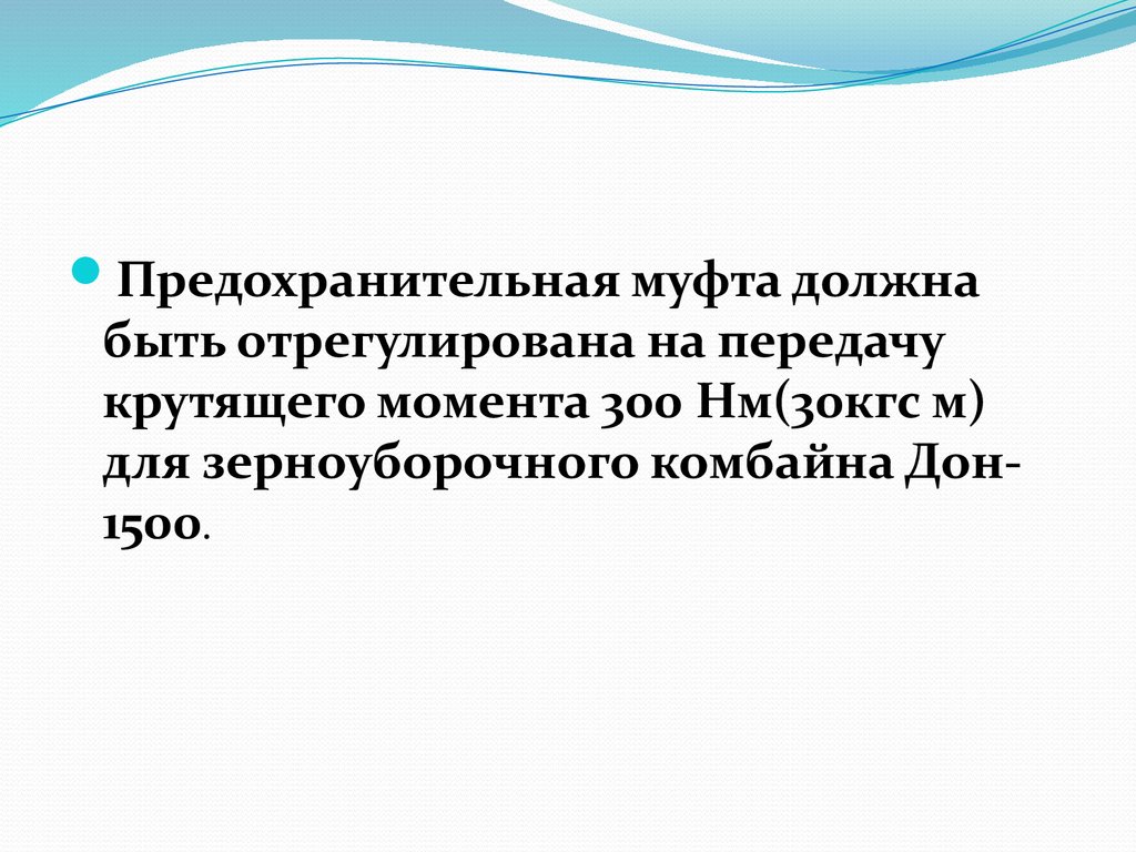 Предохранительная муфта должнабыть отрегулирована на передачу
