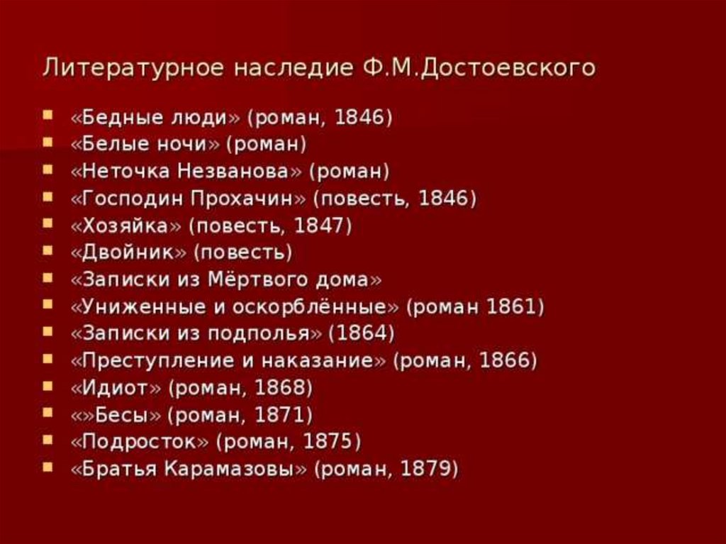 Творчество Ф.М. Достоевского