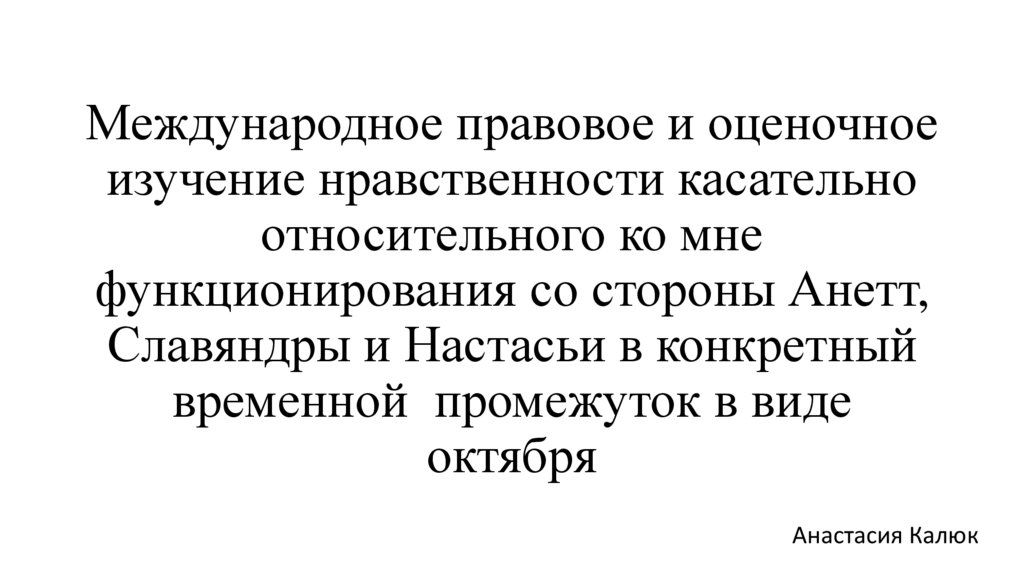 Международное правовое и оценочноеизучение нравственности касательно