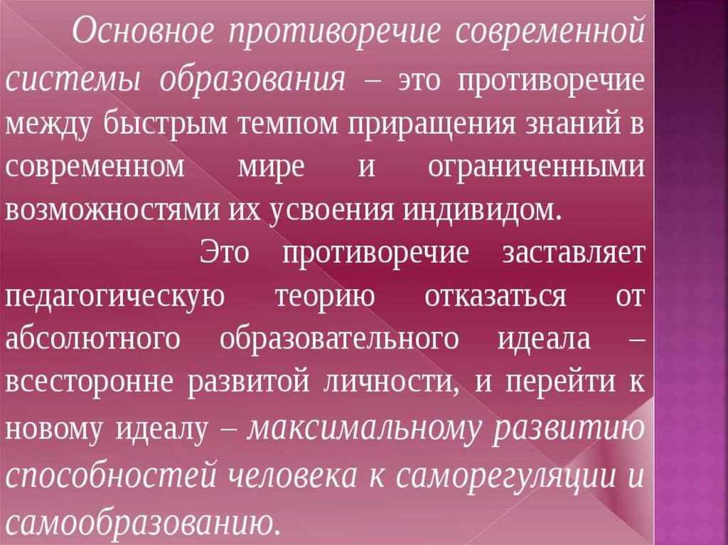 ПРОТИВОРЕЧИЕ 2Образование должно быть