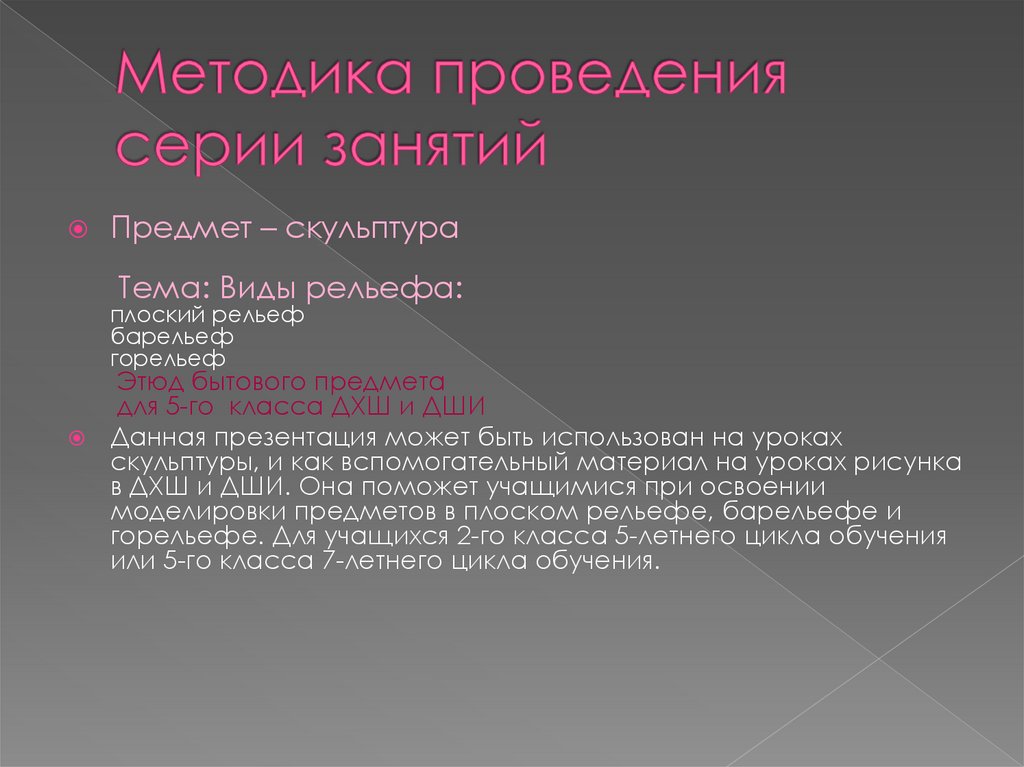 Предмет – скульптураТема: Виды рельефа: