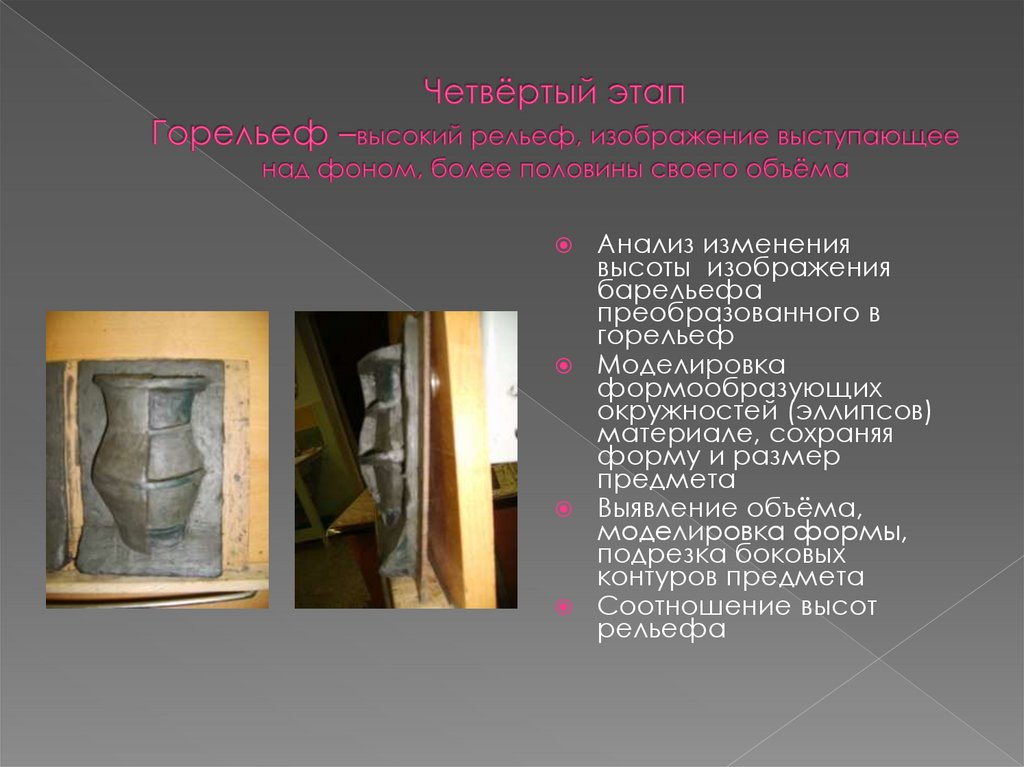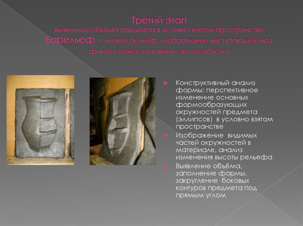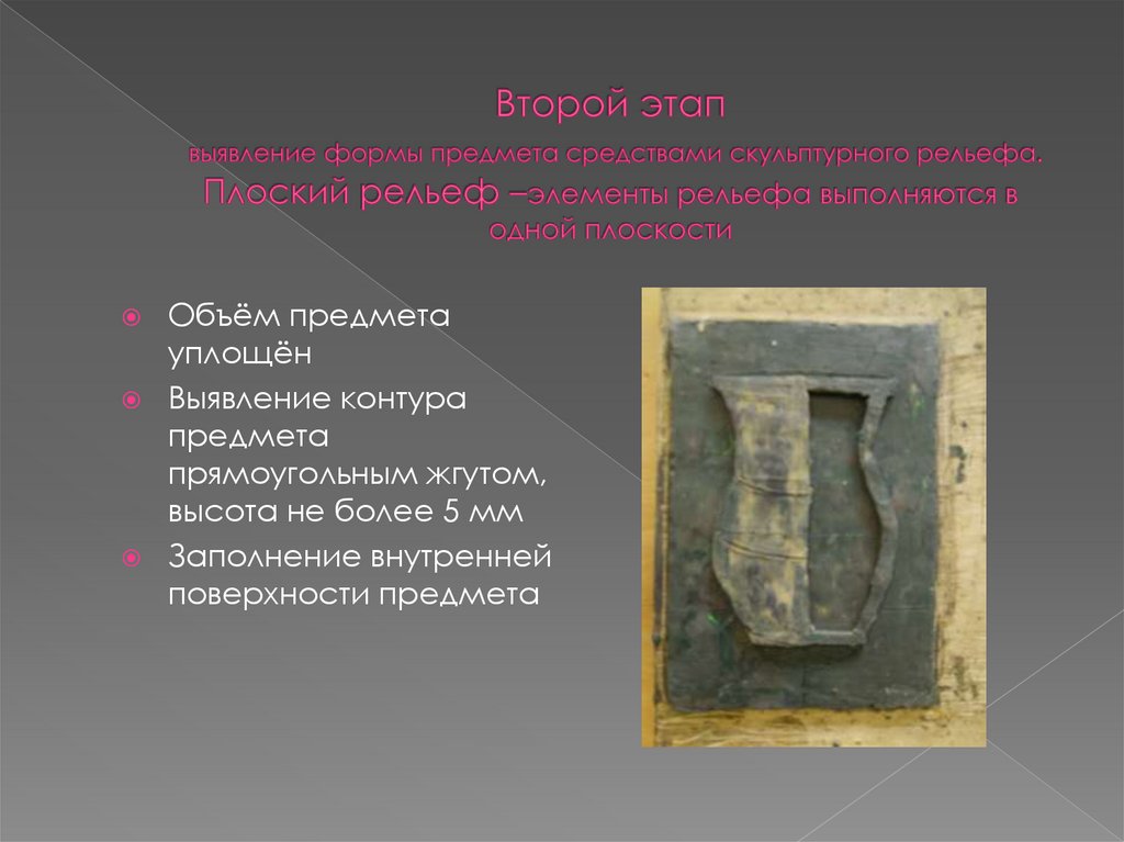 моделировки предметов в плоском рельефе, барельефе и