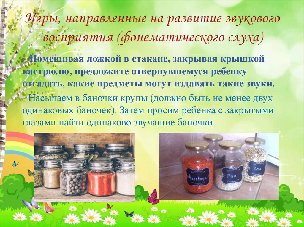 - развитие звукового восприятия