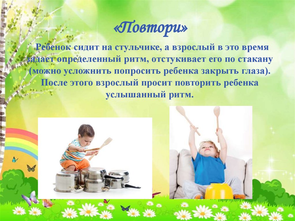 «Повтори»Ребенок сидит на стульчике, а взрослый в это время