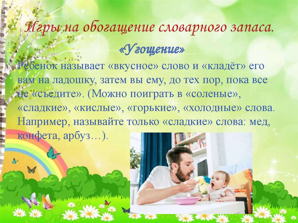 «Угощение»Ребенок называет «вкусное» слово и «кладёт» его