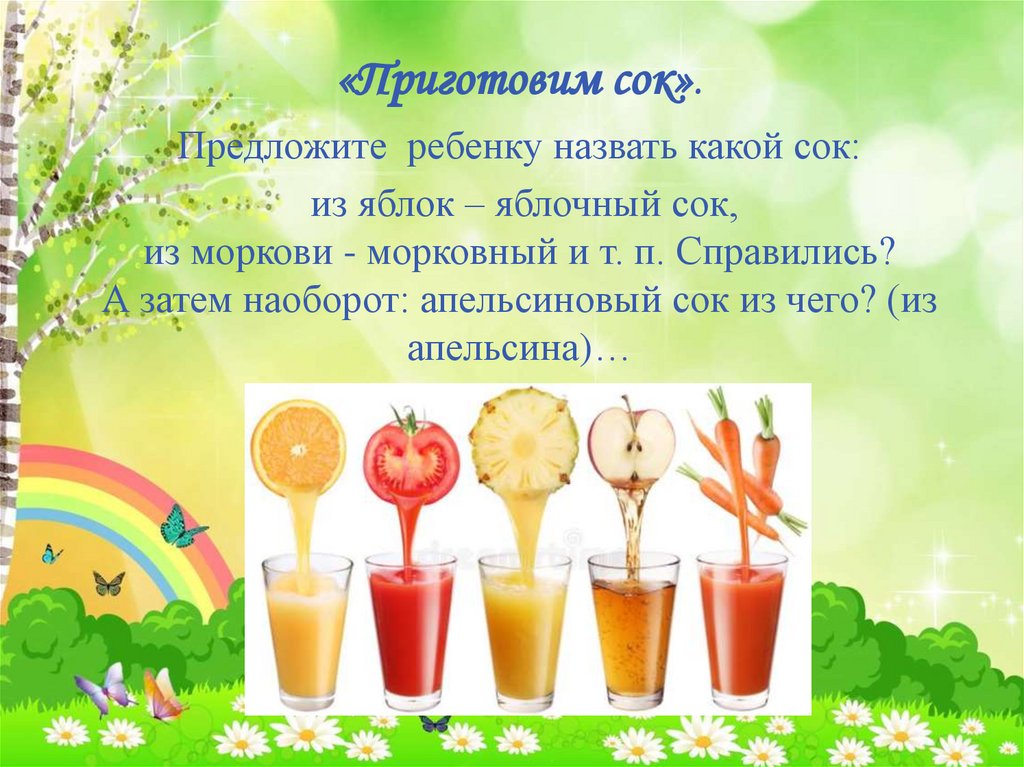 «Приготовим сок».Предложите ребенку назвать какой сок: