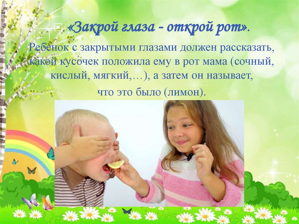 «Закрой глаза - открой рот».Ребенок с закрытыми глазами должен рассказать,