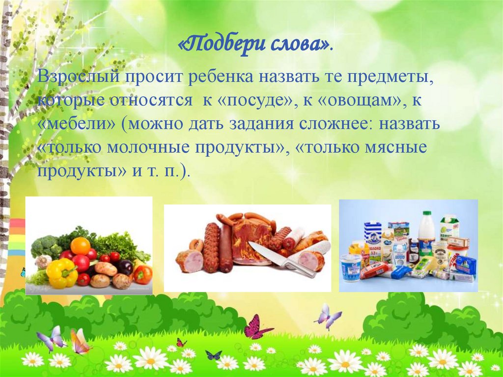 «Подбери слова».Взрослый просит ребенка назвать те предметы,