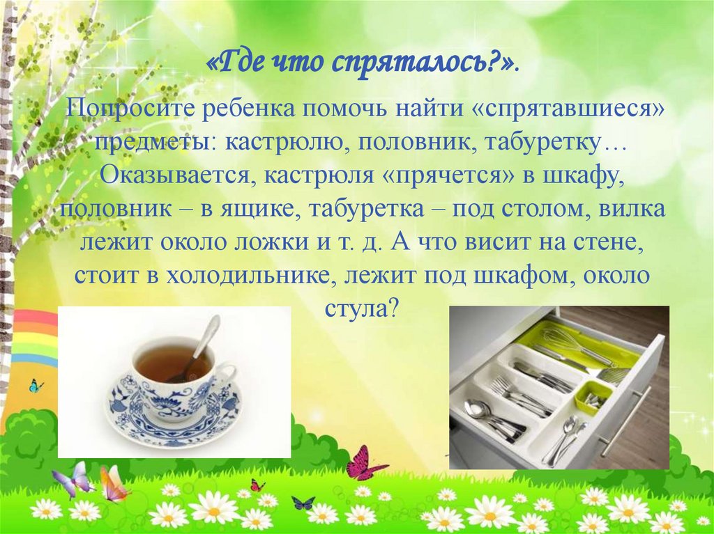 «Где что спряталось?».Попросите ребенка помочь найти «спрятавшиеся»