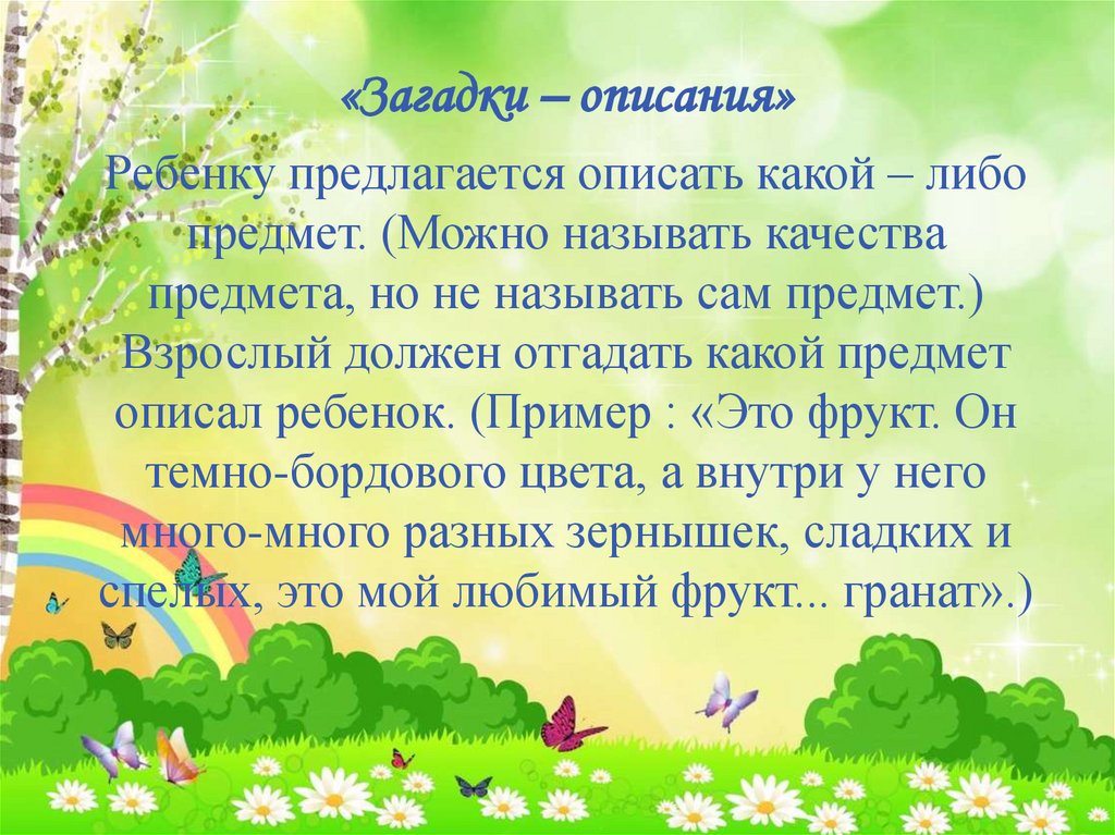«Загадки – описания»Ребенку предлагается описать какой – либо