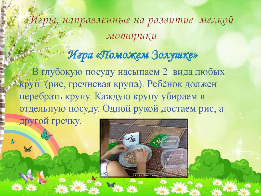 Игра «Поможем Золушке»В глубокую посуду насыпаем 2 вида любых