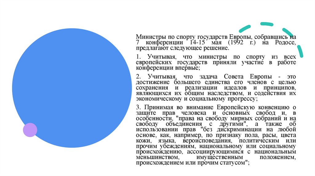 Министры по спорту государств Европы, собравшись на7 конференции 14-15 мая (1992 г.) на Родосе,