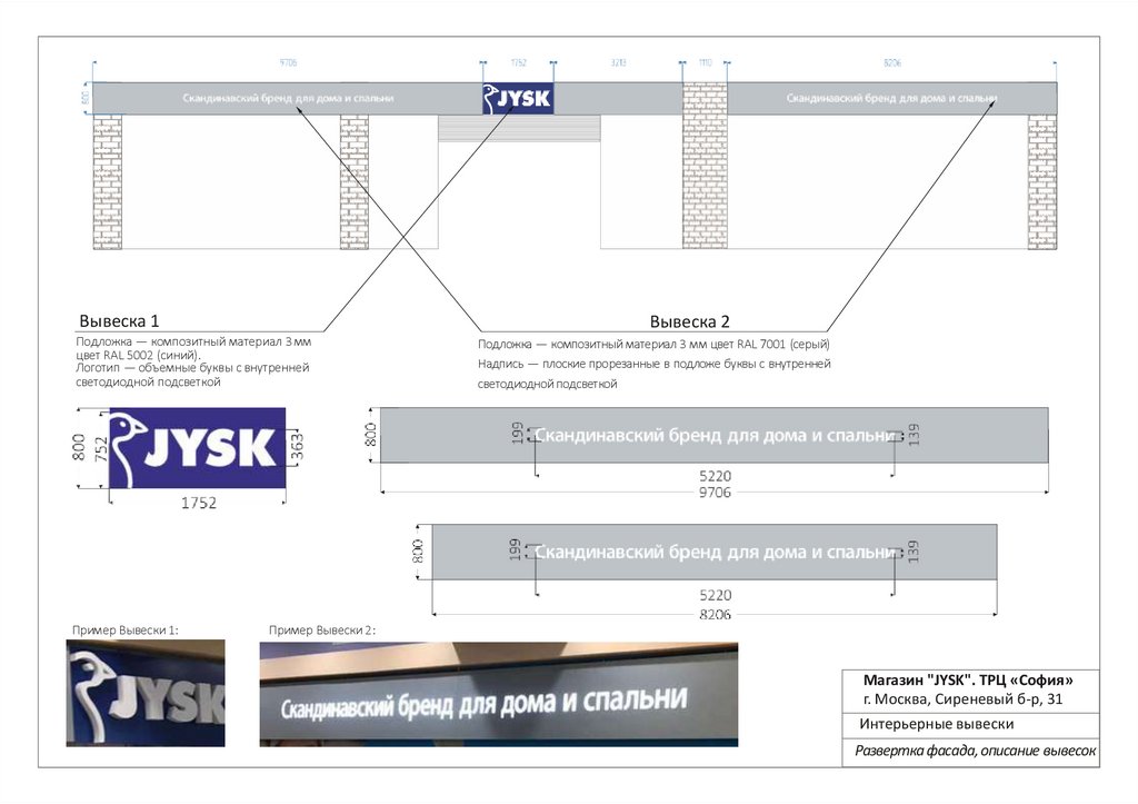 Развертка фасада, описание вывесок