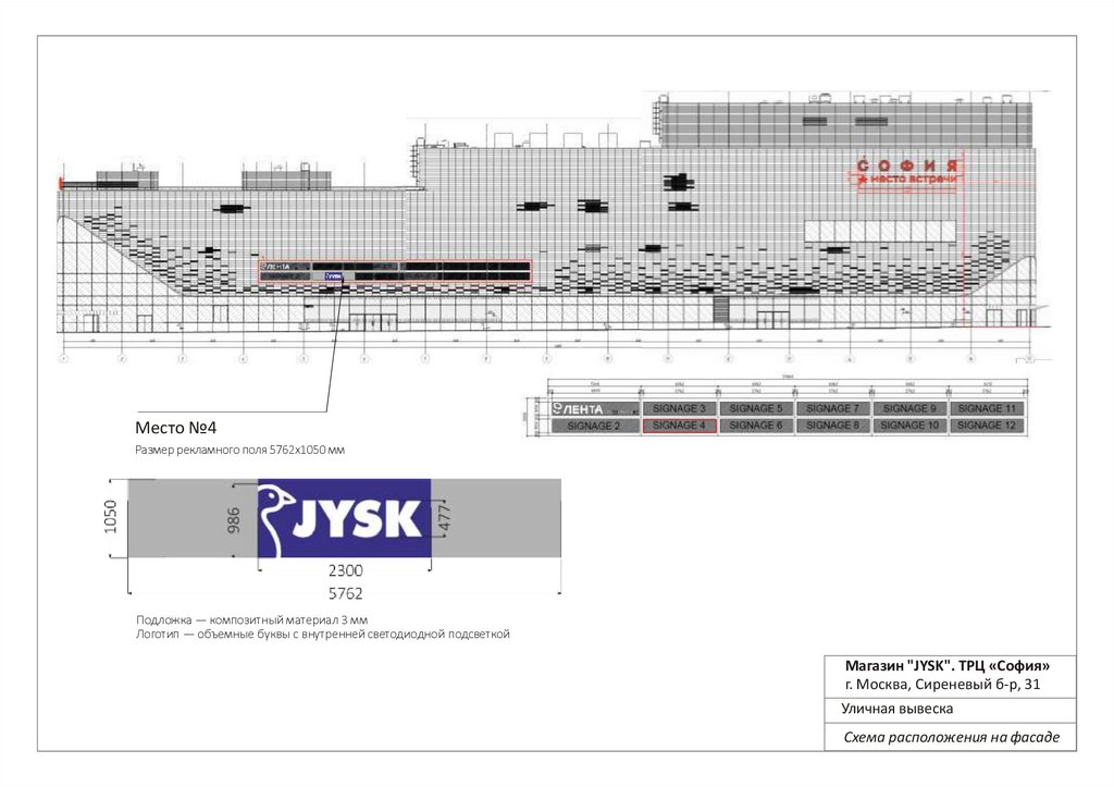 Место №4Размер рекламного поля 5762х1050 мм