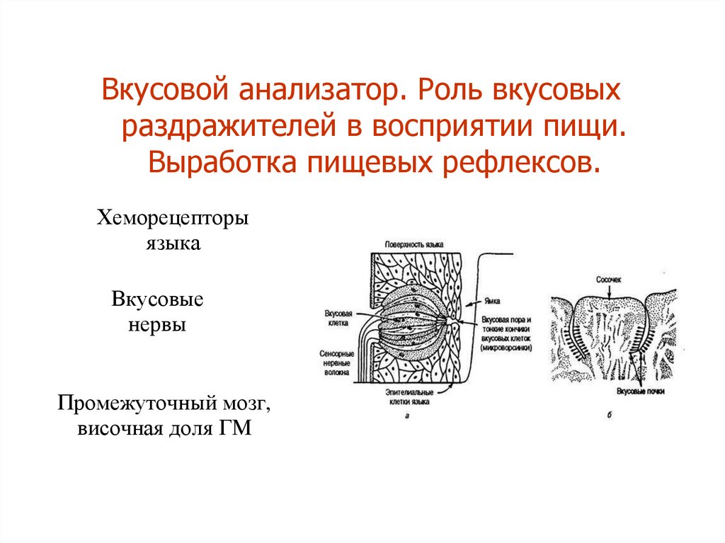 Вкусовой анализатор. Роль вкусовыхраздражителей в восприятии пищи.