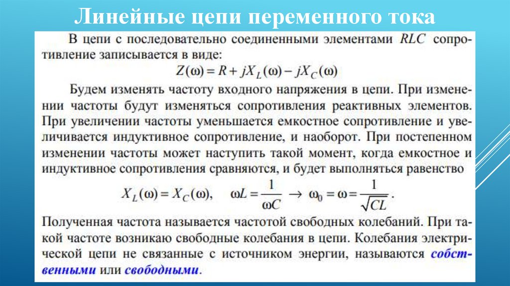 Линейные цепи переменного тока.