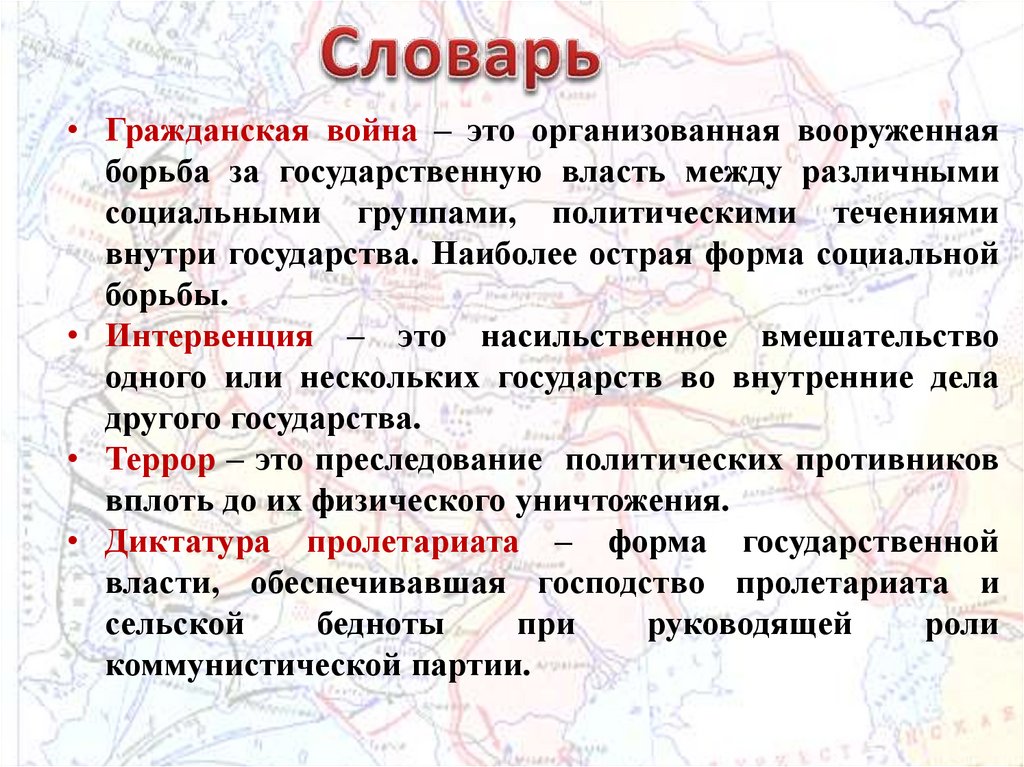 • Гражданская война – это организованная вооруженнаяборьба за государственную власть между различными