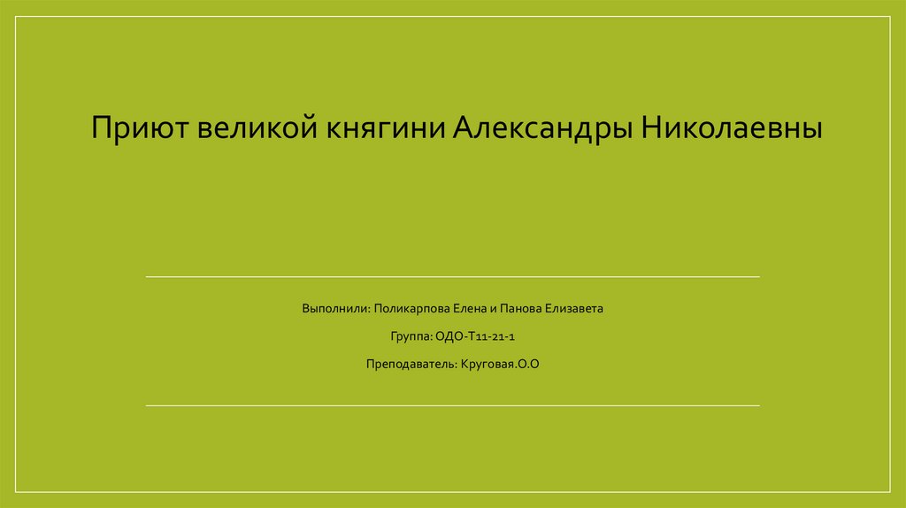 Приют великой княгини Александры НиколаевныВыполнили: Поликарпова Елена и Панова Елизавета