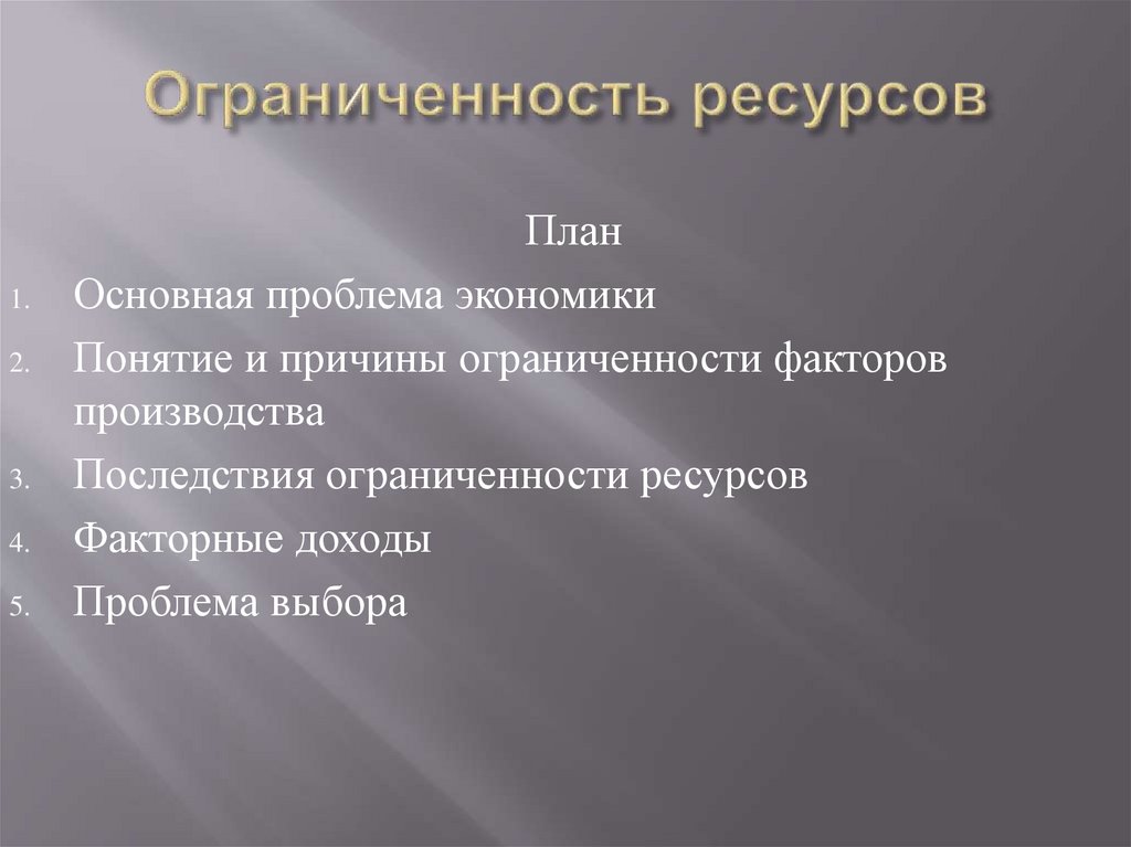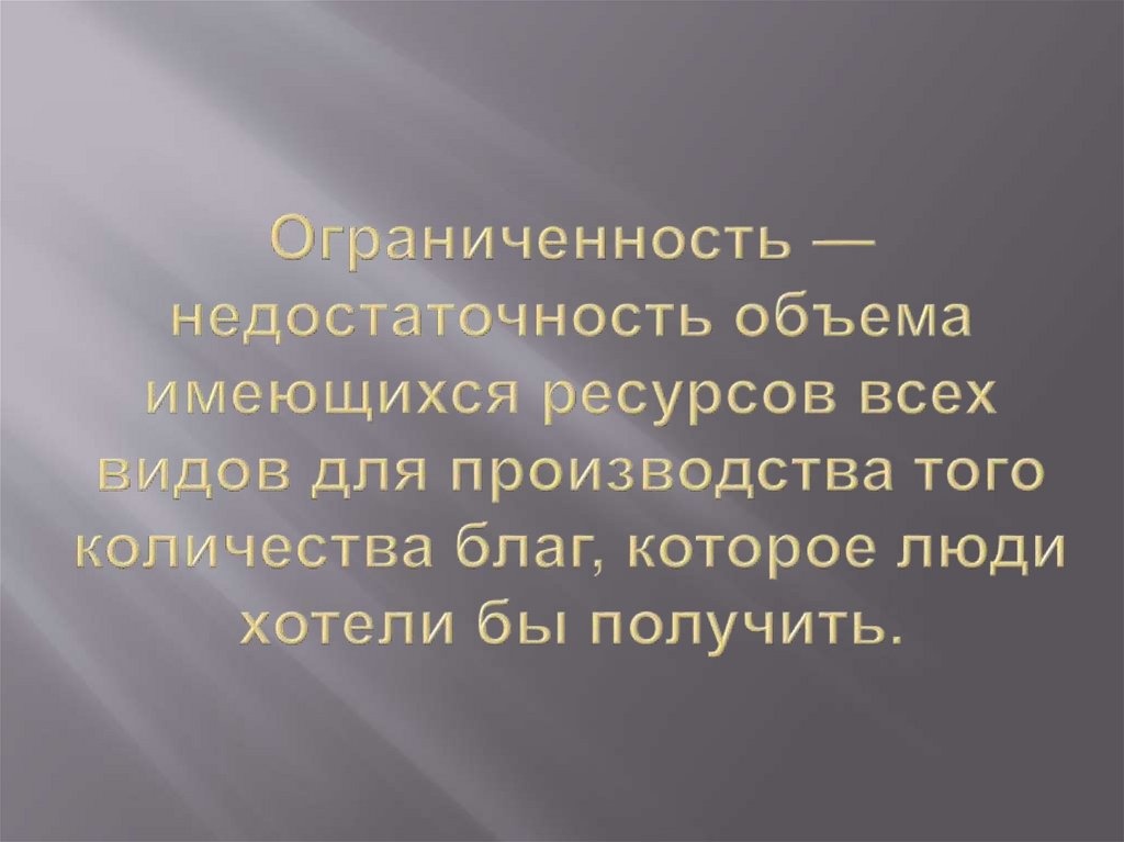 Объем ресурсовОграниченность – экономическая недостаточность ресурсов для