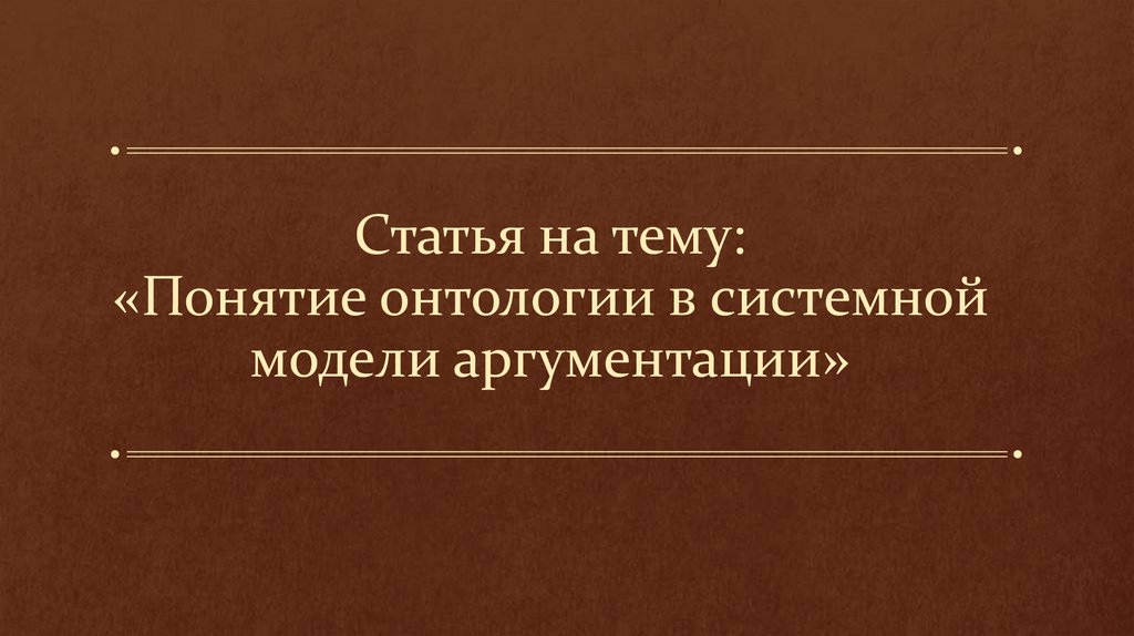 Автор приходит к выводу, что под онтологией в системной модели аргументации следует