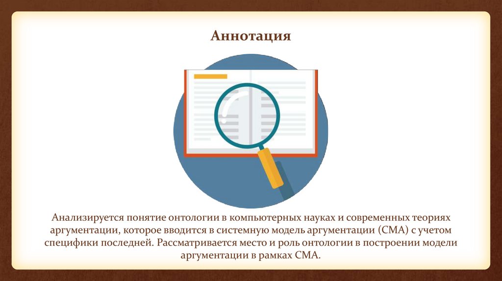 Автором была проанализирована связь онтологии со схемами и диаграммами аргументации.