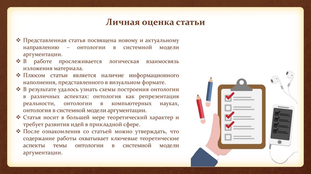 Личная оценка статьиПредставленная статья посвящена новому и актуальному