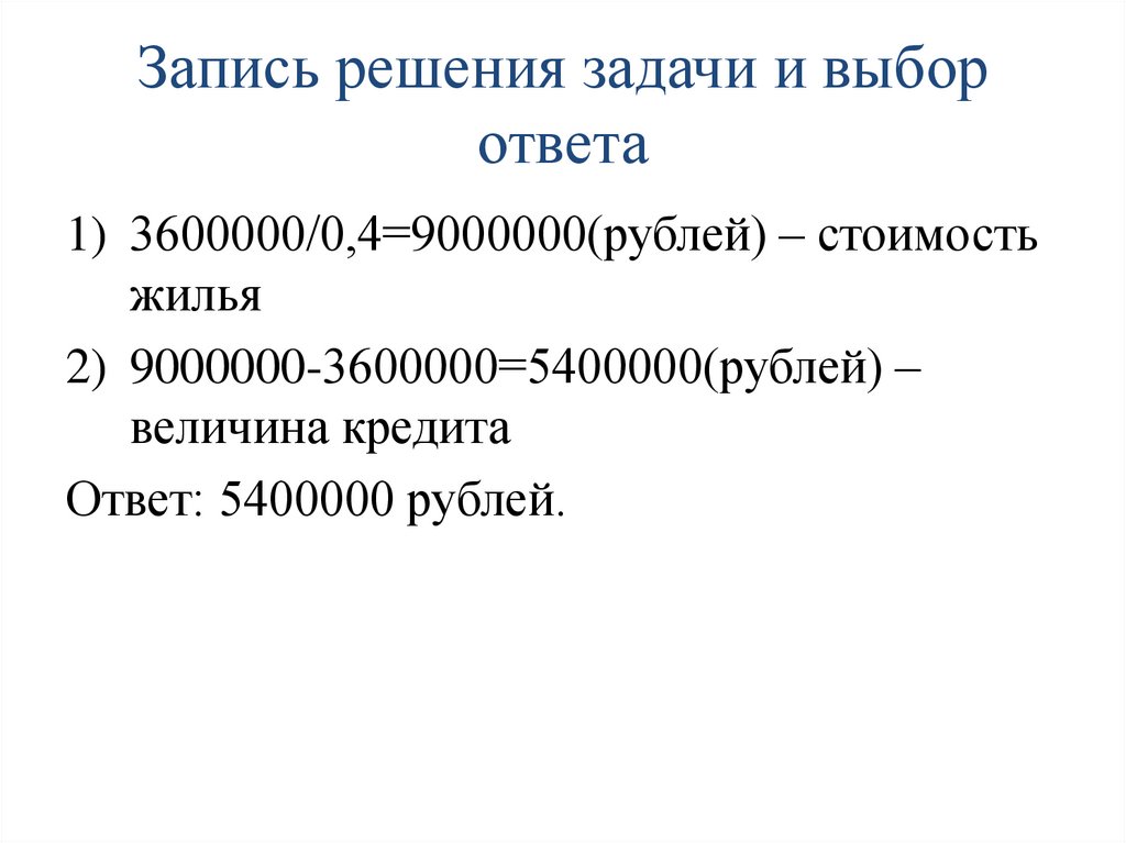 • О чем задача?о кредите для покупки жилья.