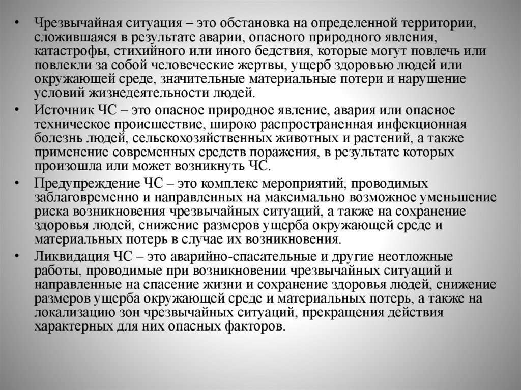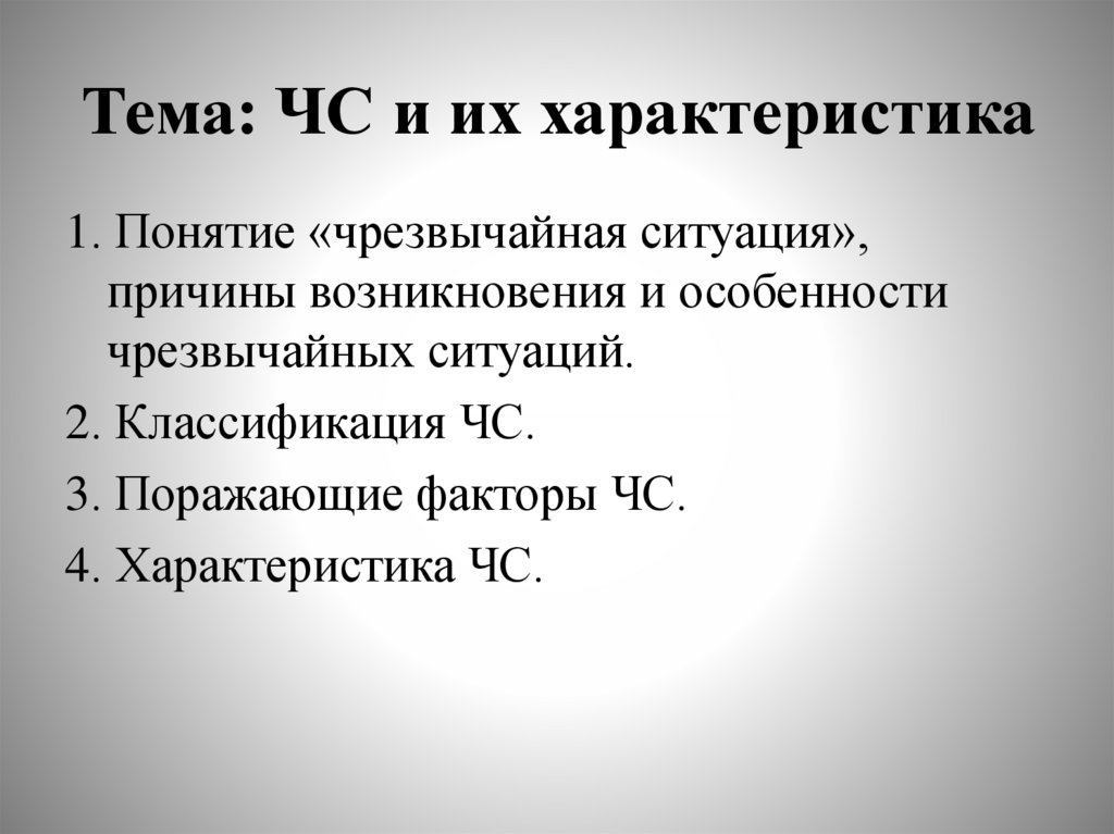 Тема: ЧС и их характеристика1. Понятие «чрезвычайная ситуация»,