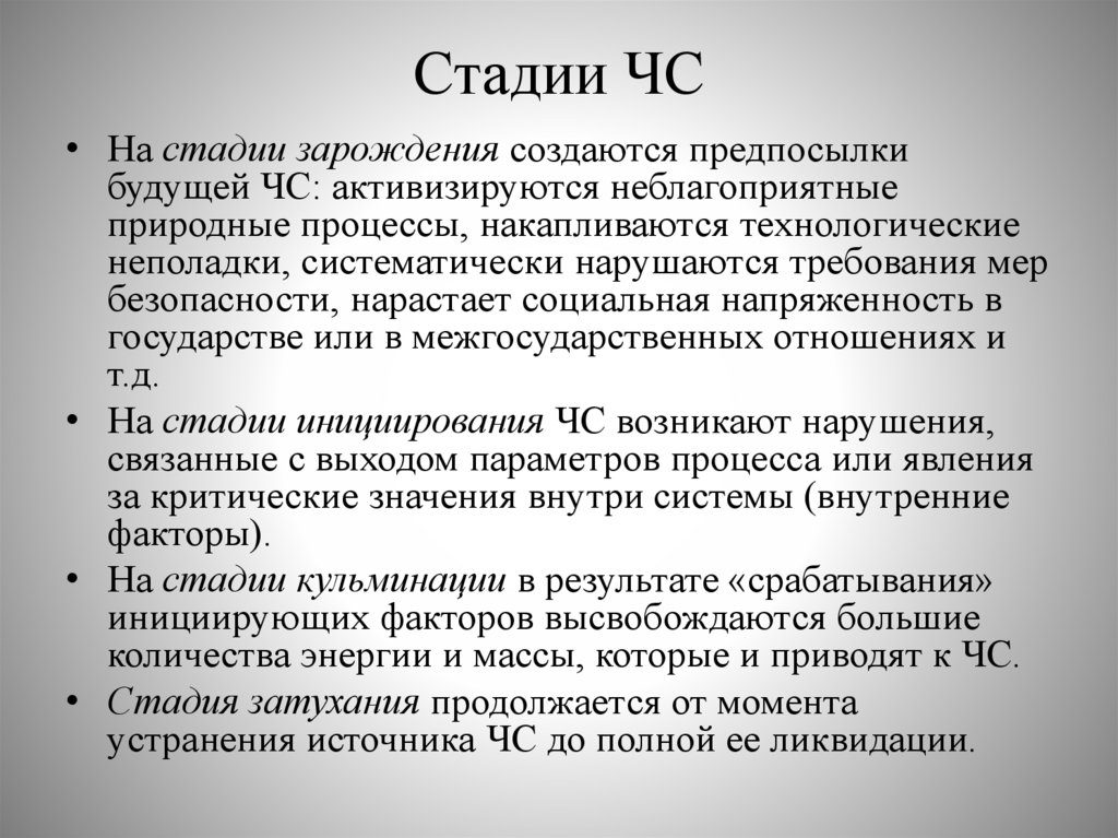 Стадии ЧС• На стадии зарождения создаются предпосылки