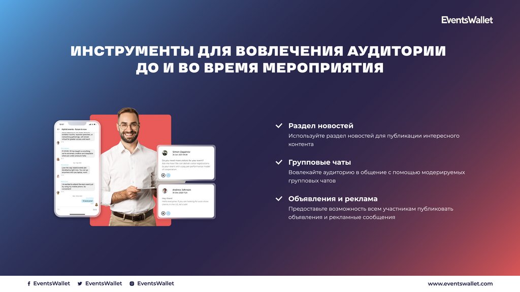 EventsWallet - мультиязычная платформадля проведения офлайн, онлайн и гибридных